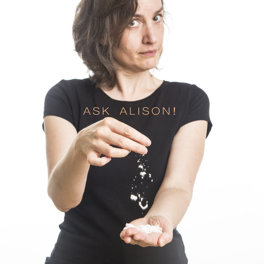 American English favours a “grain” of salt, rather than a “pinch”. Pinch is better, I think; it’s got that kinaesthetic edge to it and conjures up so many more images. You can picture me actually putting thumb and forefinger together, picking up some salt and sprinkling it on the situation (as above).